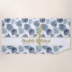Serviette De Plage Monogramme Azure Blue Tropical Feuilles Gold Nouve