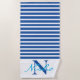 Bleu Blanc Trappe Monogram Beach Serviette. Personnalisez avec votre nom et vos initiales.