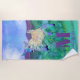 Personnalisez cette chèvre chèvre mignonne colorée sautant en ajoutant un nom monogramme et initial à cette amusante serviette de plage. Une illustration colorée de l'aquarelle pour les amateurs de chèvres qui sautent à la chèvre adorable. Idéal pour les amoureux des animaux. Baby chèvre sautant dans turquoise, bleu, violet et jaune avec un arrière - plan paysager de la campagne. OEuvre originale de l'artiste Catherine Sweetman