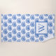 Cette serviette de plage monogrammée d'inspiration côtière de preppy présente des coquillages en bleu et blanc classique. Personnalisez le monogramme bleu et blanc correspondant avec votre choix d'origine.