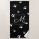 Serviette De Plage Monogramme Empreinte de patte de chien mou noir et