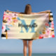 Serviette De Plage Monogramme et nom floral aquarelle rose d'été