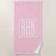 Serviette De Plage Monogramme initial | Blanc sur rose clair