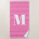 Serviette De Plage Monogramme initial fuchsia rose chaud rayures blan
