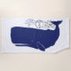 Cette serviette de plage orientée nautique sera parfaite pendant des jours à la plage. Caractéristiques de conception ce une baleine bleue avec le bec d'eau et un timbre-poste pour que vous personnalisiez avec la ville, la date et l'état de votre choix. Conçu par le ©Tim de renommée mondiale Coffey d'artiste.
