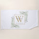 Elégante aquarelle verdure feuille nom de serviette de plage monogramme avec une initiale en or monogramme. Conçu par Thisisnotme©