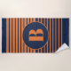Serviette De Plage Monogramme rayé bleu orange de la marine