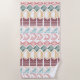 Cette serviette de plage a un design Boho de différentes formes avec des lignes en elles dans des couleurs variées.