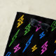 Un motif rétro inspiré des années 80 avec des illustrations colorées de foudre néon sur un arrière - plan noir. Un design parfait pour les amateurs de design nostalgique des années 80, d'illustrations colorées et de motifs néons vintages.