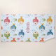 Cette serviette de plage personnalisée présente des poissons tropicaux souriants dans des tons vifs de rouge, bleu, vert, jaune et orange, nageant parmi les algues, les coraux et les bulles, dressés contre un arrière - plan bleu clair doux.