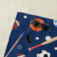 Ce motif d'équipement sportif amusant pour enfants a des balles de football, des balles de football, des balles de baseball, des balles de volley, des bâtons et des chaussettes de hockey, et des chauves-souris de baseball. L'équipement sportif a un arrière - plan de bleu foncé. Il fait un grand ajout à une piscine ou un voyage à la plage d'un petit garçon ou d'une petite fille. Il fait aussi un joli anniversaire, Noël, ou tout autre cadeau de vacances.
