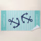 Profitez d'un confort total à la plage ou au bord de la piscine, et cool et séchez avec cette serviette de plage amusante, colorée et confortable. Avec place pour customiser ou personnaliser avec un nom, monogramme, initiales ou (limité) texte de votre choix. Posez-vous dans le sable avec cette belle ancre contemporaine sur un arrière - plan motif classique à rayures bleu turquoise et blanc aqua. Design moderne et élégant pour le marin ou le bateau, océan ou mer, le bateau, la voile ou les amateurs de sports nautiques.