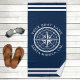Serviette De Plage Name of your boat Nautical Compass Navy blue