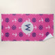 Cette conception de serviette de plage de monogramme par les ancres blanches de caractéristiques de Frog™ de toile de jute et bleu marine embarquent des roues sur un arrière - plan rose avec un cercle gris pour votre initiale. Customisez cette serviette de plage à la mode avec votre initiale. Cliquez sur la "personnaliser il !" boutonnez pour changer la taille des textes, la couleur des textes, le style de police et les plus ! Copyright ©2018 la toile de jute Frog™