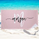 Serviette De Plage Nom de monogramme féminin écriture moderne rose él