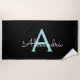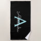 Serviette de plage à monogramme noir et bleu sarcelle aqua. C'est le cadeau idéal pour un anniversaire des 16 ans, un mariage, une douche de mariée, un anniversaire, une baby shower ou une fête de bachelorette pour quelqu'un qui aime le luxe glamour et les styles chic.