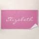 Cette serviette de plage personnalisée présente votre nom dans une belle écriture manuscrite en lettrage sur un arrière - plan rose élégant. Super idée cadeau.
