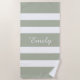 Personnalisé Moderne Sage Vert Striped Motif Nom Plage Serviette.