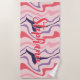 Serviette De Plage Nom personnalisé Retro Swirl Abstrait Wave Pink Pu