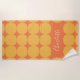 Cette serviette de plage personnalisée est dotée d'une motif moderne audacieuse d'inspiration du milieu du siècle, dans un jaune doré chaleureux et orange brûlé, avec un nom personnalisé en écriture élégante. Idéal pour les vacances d'été, les salons au bord de la piscine ou les fêtes à thème rétro. Un cadeau élégant et fonctionnel pour les amateurs de design et de plage.