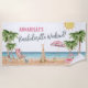 Serviette de plage tropicale pour enterrement de vie de jeune fille, thème aquarelle d'été côtier. Un thème de plage aquarelle frais avec des nuances de rose et de sarcelle, créant l'ambiance d'une escapade à la plage avec la mariée et ses meilleures amies. Des voyages en Floride, en Californie, ou même quelque chose de plus international comme le Mexique, Hawaï ou les Bahamas, ce week-end entre filles va être inoubliable ! Chaise de plage rose et blanche mignonne, parasol et une fille se prélassant au soleil. Les palmiers qui se balancent, les coquillages à collectionner - c'est tout simplement l'ambiance tropicale décontractée. Avec des polices modernes ajoutant une touche stylée, c'est le look parfait pour votre week-end d'enterrement de vie de jeune fille. Juste vous et votre groupe, cré