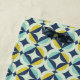 Ce motif moderne de la moitié du siècle comporte l'or et des formes bleues.