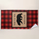 Serviette De Plage Ours Noir Sur Un Plaid Rouge Et Noir Personnalisé
