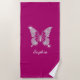 Serviette De Plage Papillon Diamant Blanc, Nom du script, Fuchsia pro