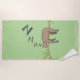 Cette serviette de plage a une illustration mignonne d'une paresse de sommeil sur une branche d'arbre. C'est une conception d'amusement appropriée à tous les procrastinators.