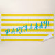 Cute yellow and white cabana stripe beach towel, with the word PARTAAAAY! Fun towel for your day club party or beach vacation.