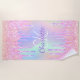 Serviette De Plage Parties scintillant arc-en-ciel goutte rose monogr