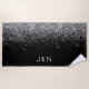 Serviette De Plage Parties scintillant d'argent noir Monogramme de fi