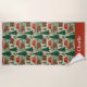 This camping-themed beach towel design is complete with a seamless pattern of cute brown bears, red tents, and a forest in a watercolor style as well as a place to add your name.