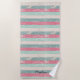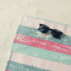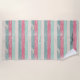 Des planches en bois défoncé dans des tons pastel doux de turquoise, rouge et crème pour un beau look de plage avec votre monogramme personnalisé sur le fond en police manuscrite. Consultez plus de serviettes dans notre magasin pour toute la famille.