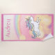 Unicorn Serviette de plage personnalisée. Arrière - plan en rose chaud (vous pouvez changer cette couleur en la sélectionnant, puis sélectionner modifier et vous pouvez changer de couleur) ou nous vous aiderons volontiers.
