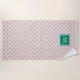 Préppy chic serviette de plage monogrammée en rose pâle et vert clair dispose d'un motif de palmiers en tout, avec votre monogramme initial unique centré au fond dans vert émeraude vibrant.