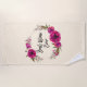 Une serviette de plage avec le texte : Best Mom Ever. Conçu avec de jolis pavots rose fuchsia et des sprigs décoratifs et des feuilles dans une couronne circulaire fleurie. Joli et élégant et créé à l'aquarelle.