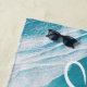 La serviette de plage Tropical Beach Sand Ocean Waves offre une vue aérienne sur les vagues bleues de l'océan qui s'élèvent sur une plage de sable. Personnalisez-le avec votre nom dans une police de caractères élégante et blanche.