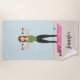 Cette serviette est idéale pour ceux qui aiment l'entraînement et surtout les poids de levage. Cette serviette présente l'illustration de Destei d'une jeune brune qui tient des haltères légères dans ses deux mains. La fille est debout sur un tapis rose avec deux cloches et une bouteille d'eau bleue. Sous l'image il y a une zone de texte personnalisable pour un nom.