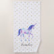 Dots d'or blanc et violet Unicorn personnalisée serviette de plage