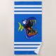Serviette De Plage Poisson bleu Piranha sur Bleu et Blanc rayé