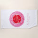 Contemporain, moderne, unique rouge vif et rose magenta mariage lune de miel serviette de plage pour les jeunes mariés avec monogramme - initiales, noms, lieu, date, unique couple d'amour romantique oiseaux dessin et script de calligraphie manuscrite tendance.