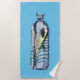 serviette de plage cool, avec illustration graphique d'un grand requin blanc coincé dans une bouteille d'eau, contre un arrière - plan à vague bleue. Customisez d'ajouter votre propre texte.