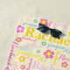 Serviette De Plage Rachel fleurs nom typographique jaune rose