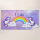 Rainbow et Unicorns Design Beach Towel avec personnalisation personnalisable. Pour aucun texte, supprimez le nom de l'exemple et laissez vide.