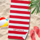 Faites une déclaration lors de vos prochaines vacances à la plage avec notre serviette de plage à rayures rouges et blanches personnalisée. Cette serviette de plage personnalisée est parfaite pour se prélasser au bord de l'eau avec style. C'est également un excellent cadeau pour les invitées ou la demoiselle d'honneur que vos proches chériront pendant des années.