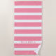 Serviette De Plage Rayure Cabane Nom Rose Et Blanc Rayé