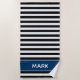 Serviettes de plage rayées avec une marine large et un motif rayé blanc. Les serviettes nautiques bleues et blanches de rayures sont parfaites pour votre jour dans la plage. Personnalisez avec votre nom ou monogramme pour un regard unique.