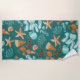 Retro sunshine called—this towel answered. With a teal backdrop that screams vacation mode, it’s splashed with playful icons like orange starfish, coral, coconuts, striped mats, watermelon slices, and heart-shaped sunnies that wink with vintage flair. The palette of tangerine, coral, lemon, and aqua channels a throwback seaside poster vibe, making every beach day pop with nostalgic energy. Whether it’s spring break, tropical escapes, poolside lounging, family hangouts, or a couple’s getaway, this retro-inspired towel has your back—pack it, flaunt it, and let the good vibes roll.