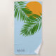 Serviette De Plage Retro Tropical Sun Palm Feuille Blue Minimal Nom